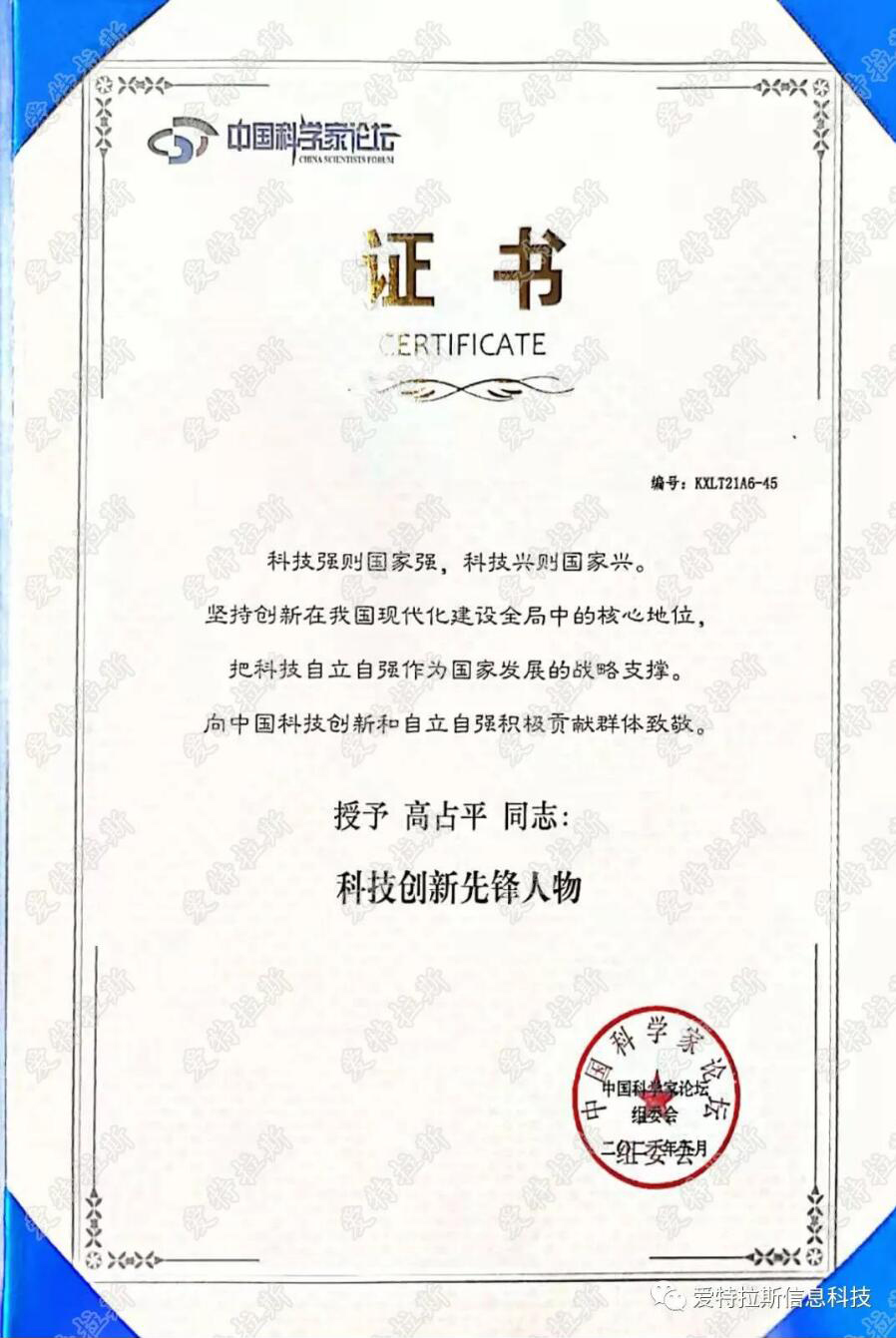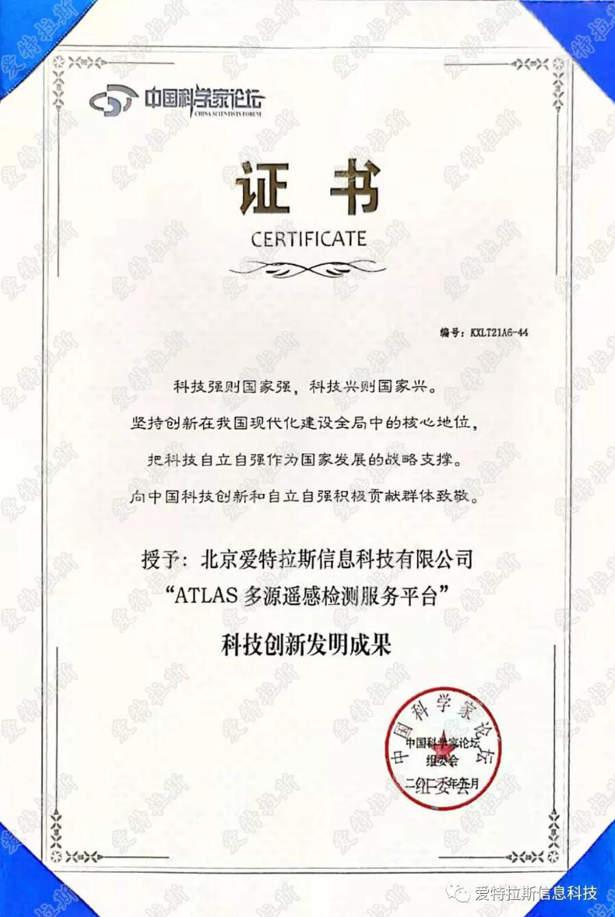 此次論壇,我司“ATLAS多源遙感檢測服務(wù)平臺”被授予《科技創(chuàng )新發(fā)明成果》證書(shū)。并且,我司總經(jīng)理還被授予了《科技創(chuàng )新先鋒人物》證書(shū)。此次證書(shū)的獲得,說(shuō)明了不管是我司總經(jīng)理的個(gè)人能力還是我司的整體實(shí)力都已經(jīng)獲得了社會(huì )的廣泛認可,不僅推動(dòng)了我司在科技領(lǐng)域的發(fā)展,還對外樹(shù)立起了公司形象,對我司今后的戰略部署有著(zhù)重要意義。